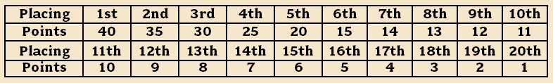 Only the top 20 finishers in each category at each event will receive omnium points as allocated below
