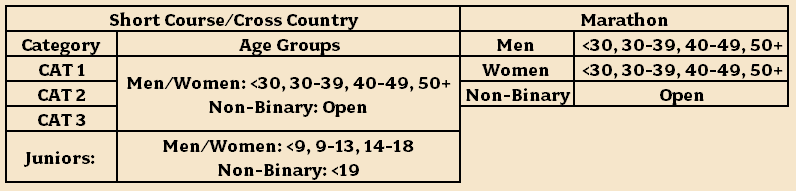 The omnium competition will use a rider’s top 4 finishes for Marathon and top 6 finishes for XCO/Short Course