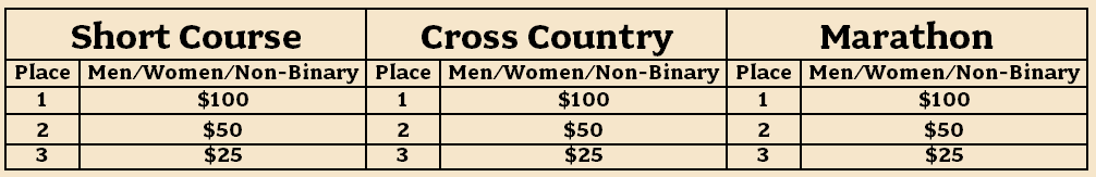 CAT 1 and Marathon categories will receive medals, cash payouts, and omnium points